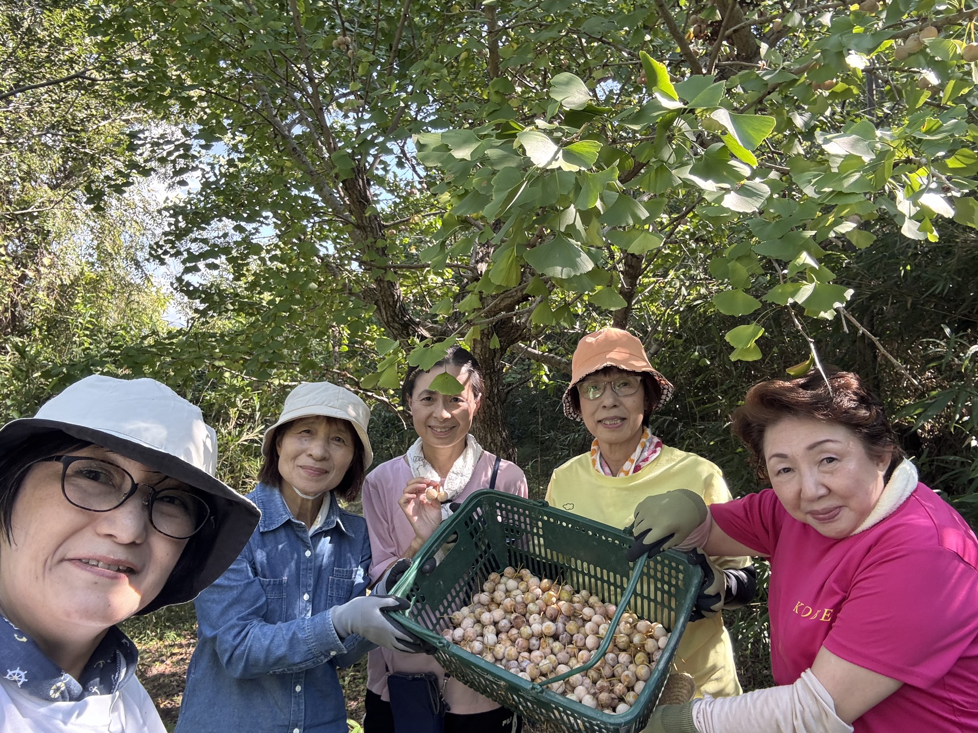 銀杏収穫のお手伝い初めてで、どこまでお手伝いできるか分からなかったんですが、やってみて 「たのし〜い!銀杏集めて籠がいっぱいになるの達成感ある〜。銀杏の枝揺らして銀杏がボトボトーって落ちるの楽しい!」