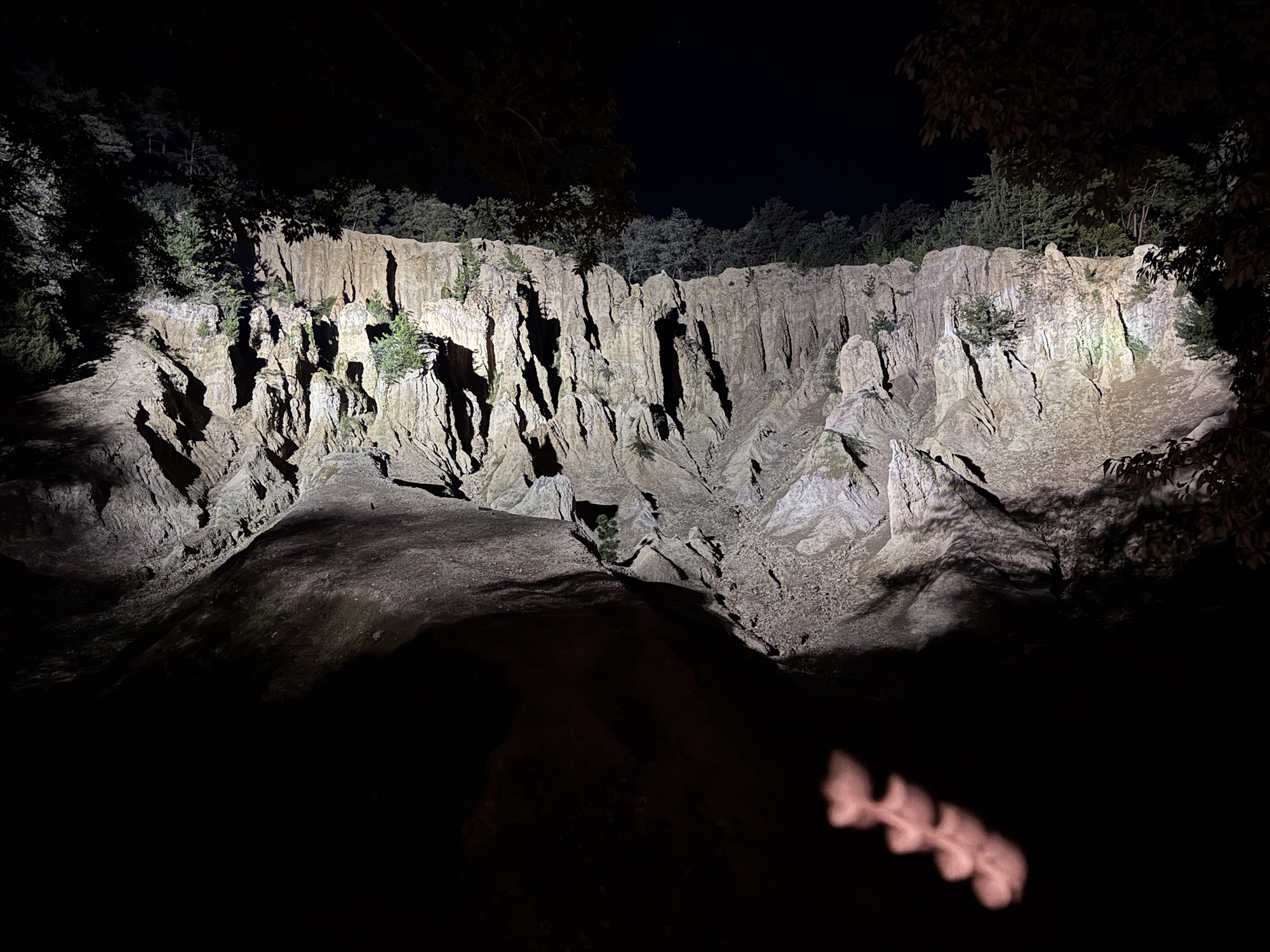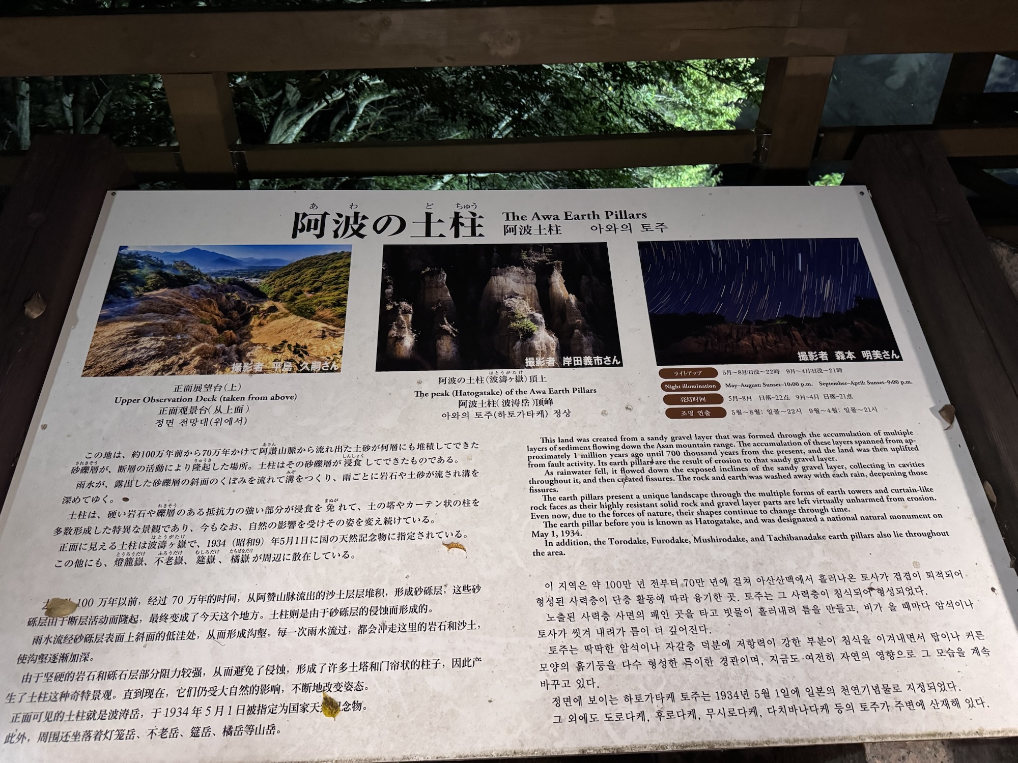 チェックインして部屋に荷物置いたら、座ることなく 宿のちかくにある「阿波の土柱ライトアップ」を見学しに行きました。