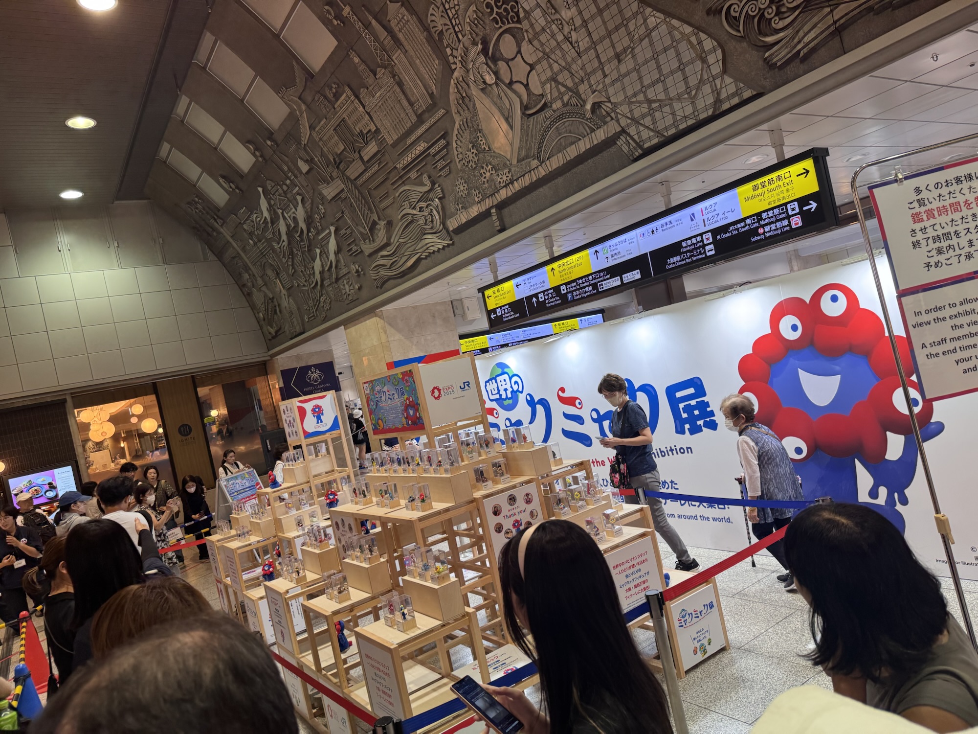 色んなミャクミャクが飾られてて 多くの人が順番に見ながら写真撮ってました。