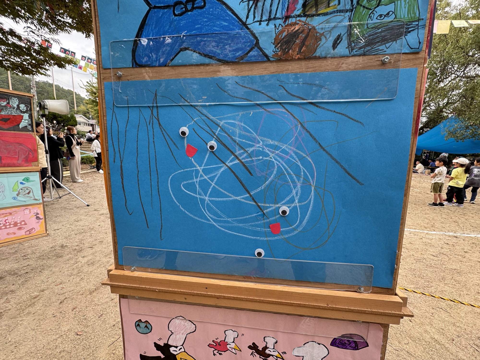 だっこマンが描いた絵にママが目と口をつけた作品です。