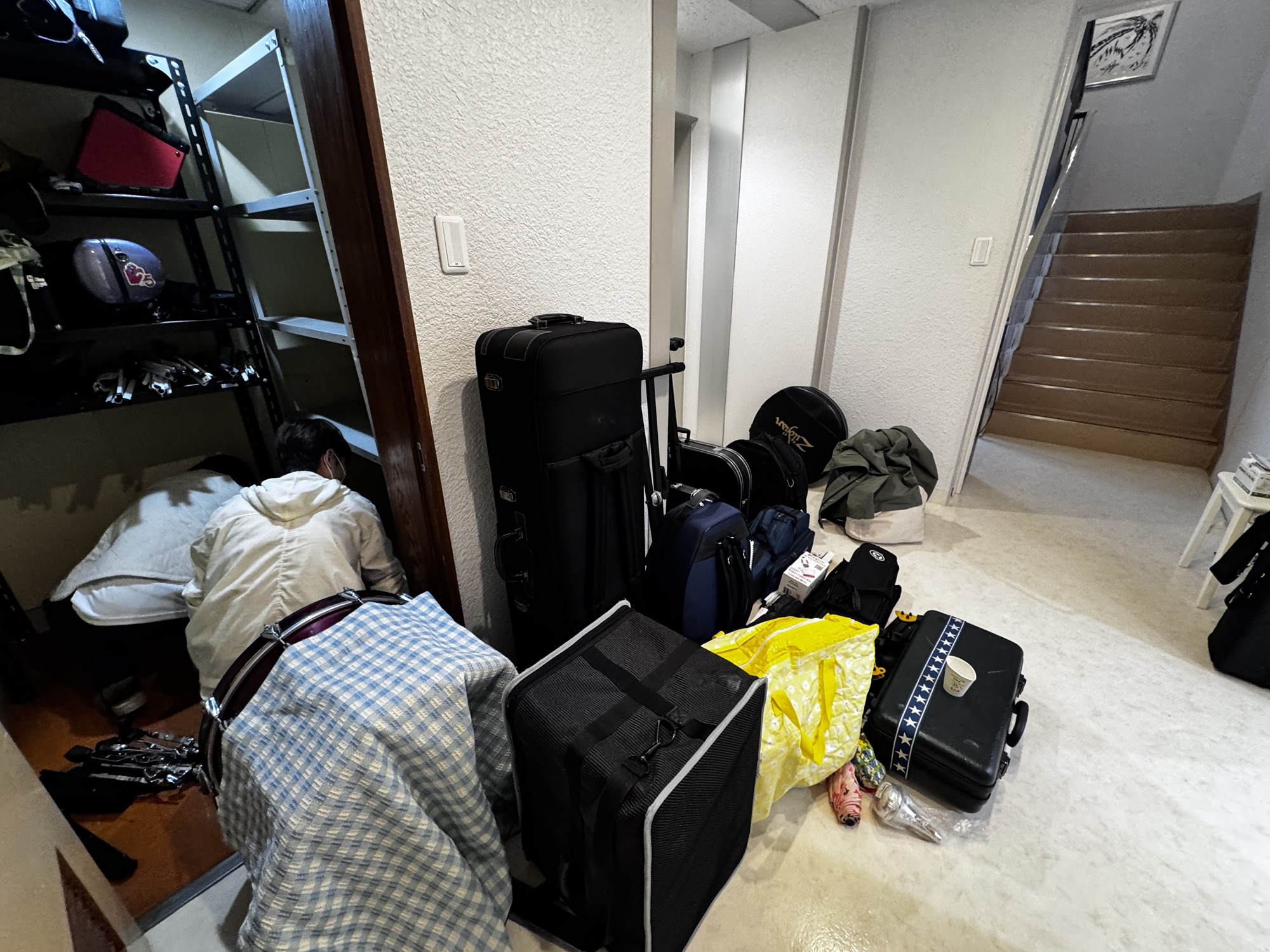楽器を直しているところも全部出して棚を拭きました。