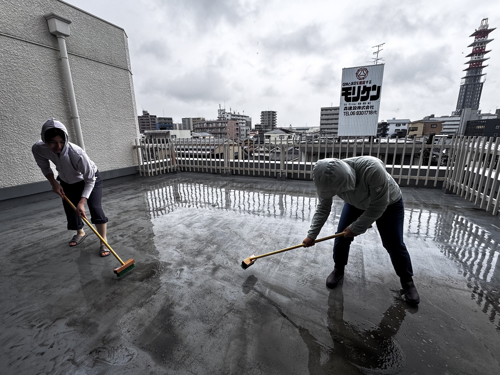 今日は雨だったのですが、ベランダもカッパを着てデッキブラシで磨きました。