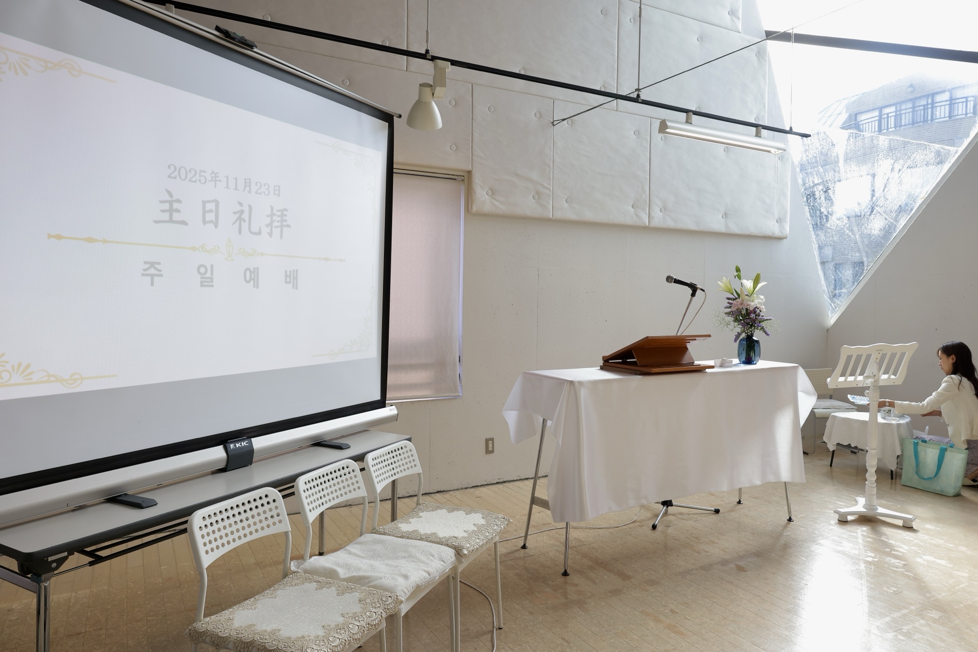 会場もこの日のために早くから予約されて、みんなで協力して準備された愛と真心の礼拝でした。