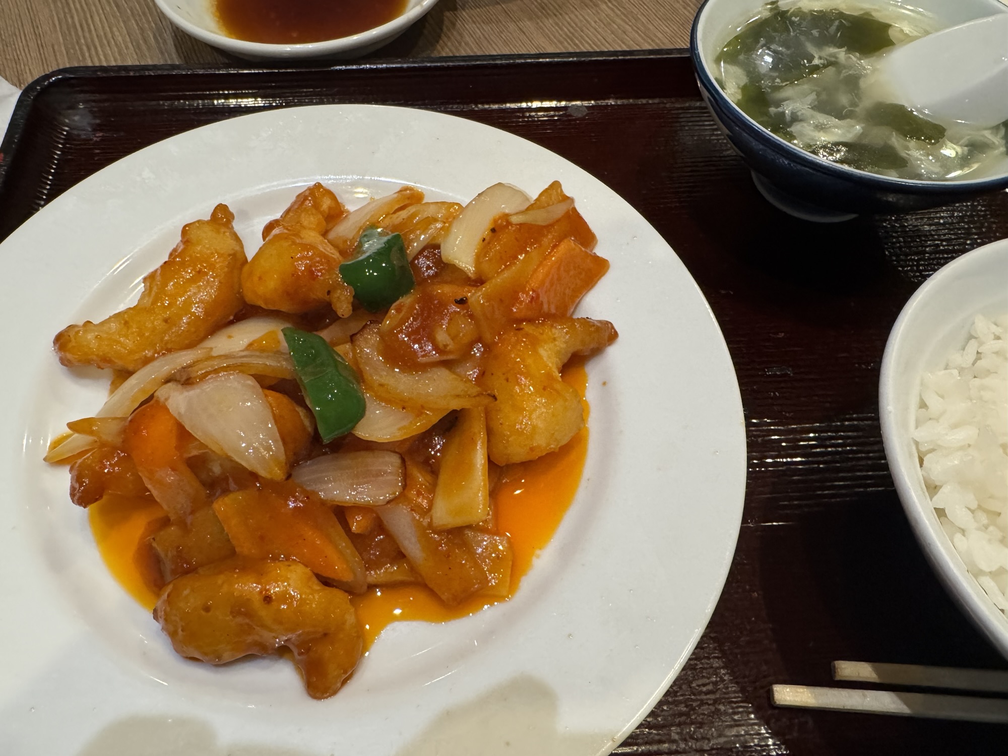 帰りに食べた海老チリ定食と餃子(みんなでシェア)です。