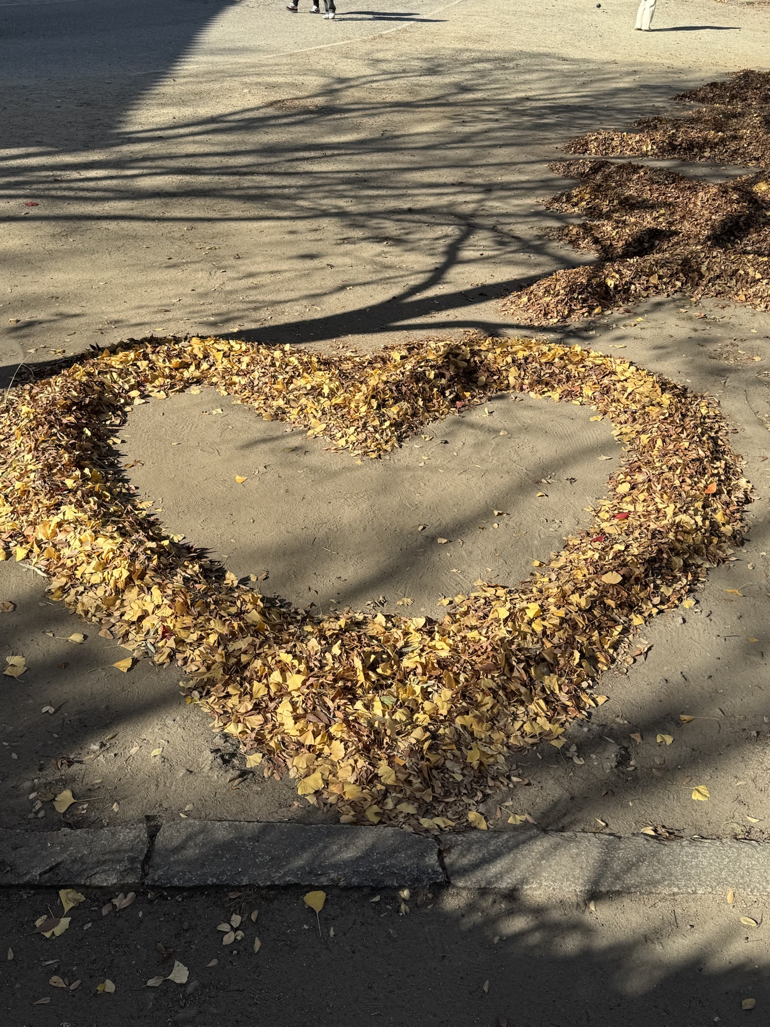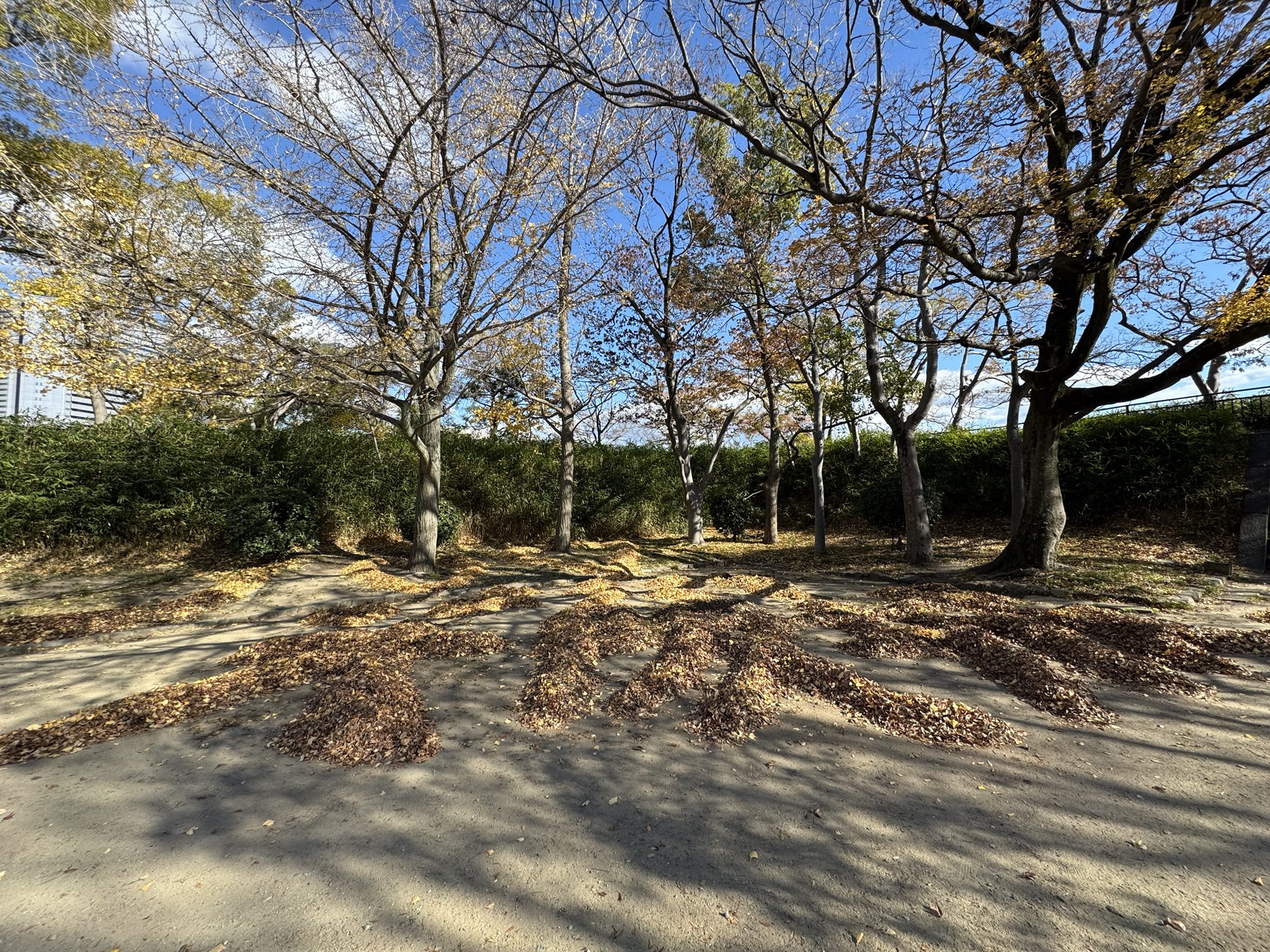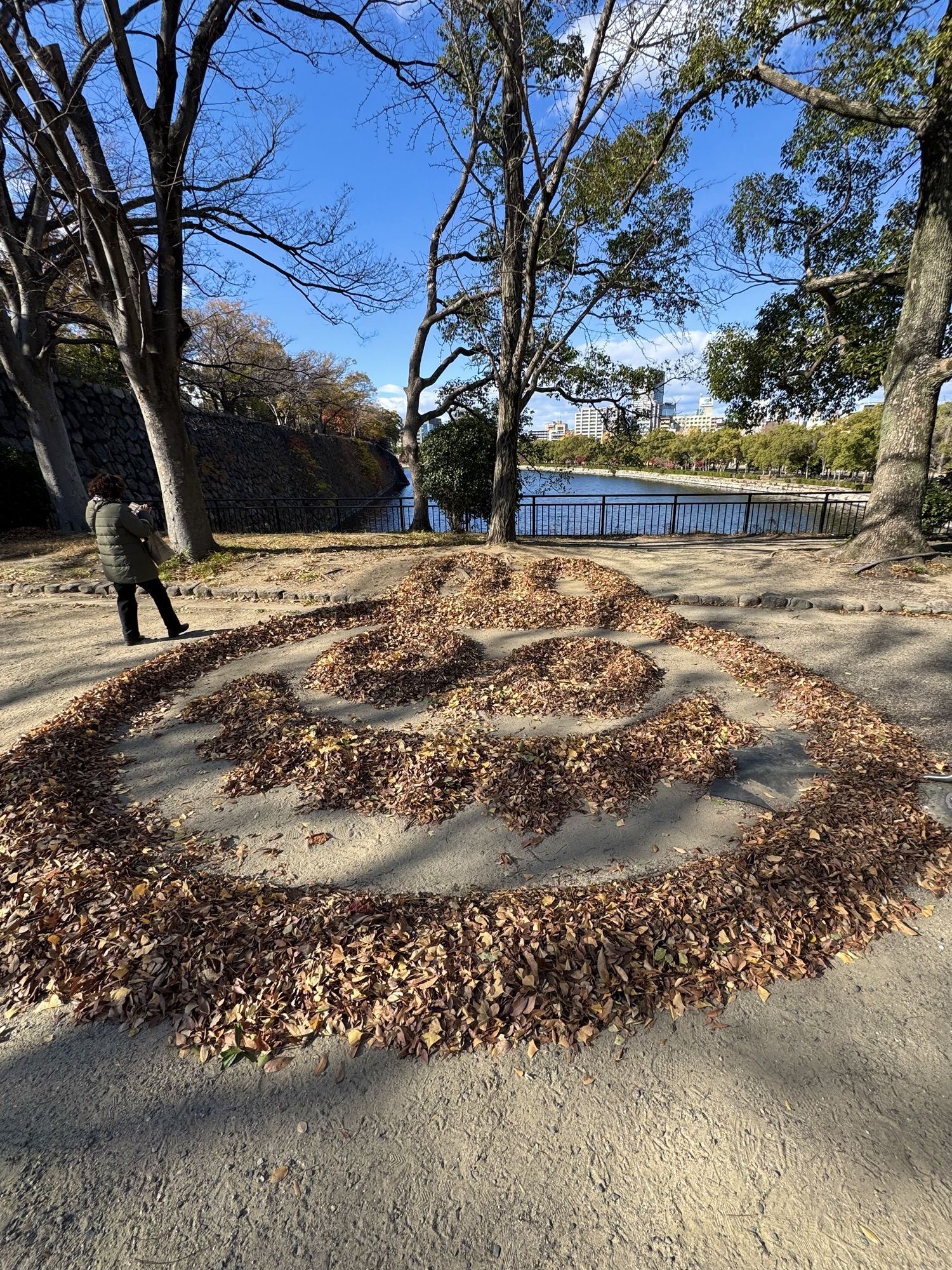 落ち葉でMERRY X’MASって書いてあったり ハートやうさぎ?のイラストができてました。