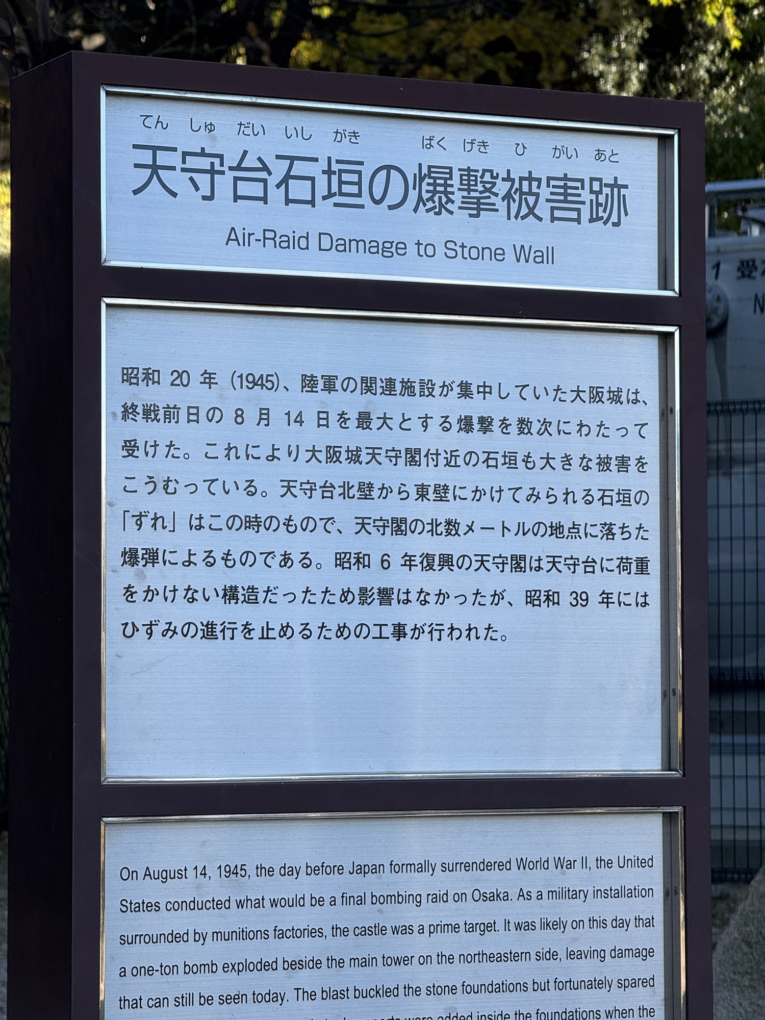 大阪城は鄭明析(チョンミョンソク)牧師先生が大阪に来られた時に散策されたところで、このたこ石も見られてた写真を見たとがあります。