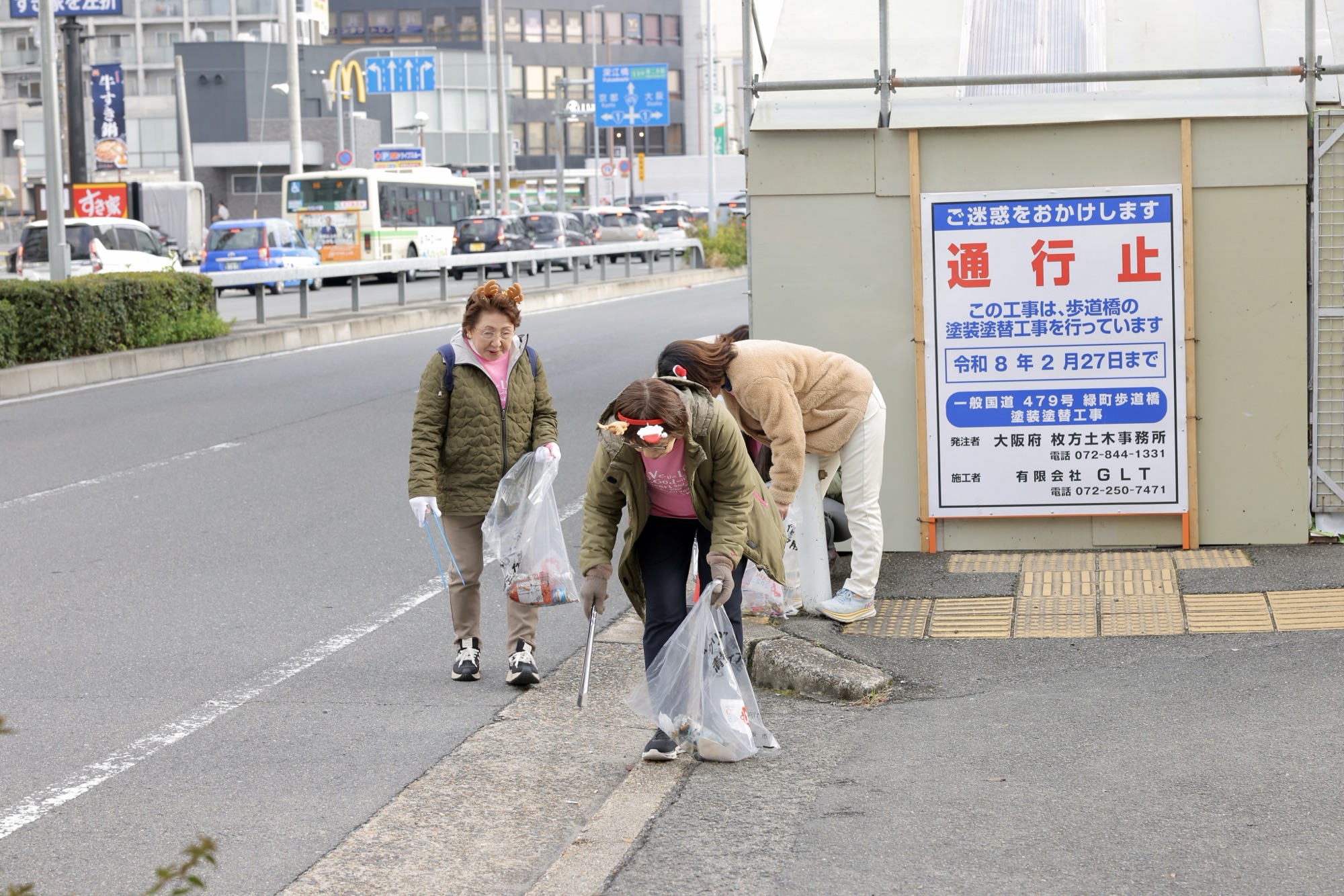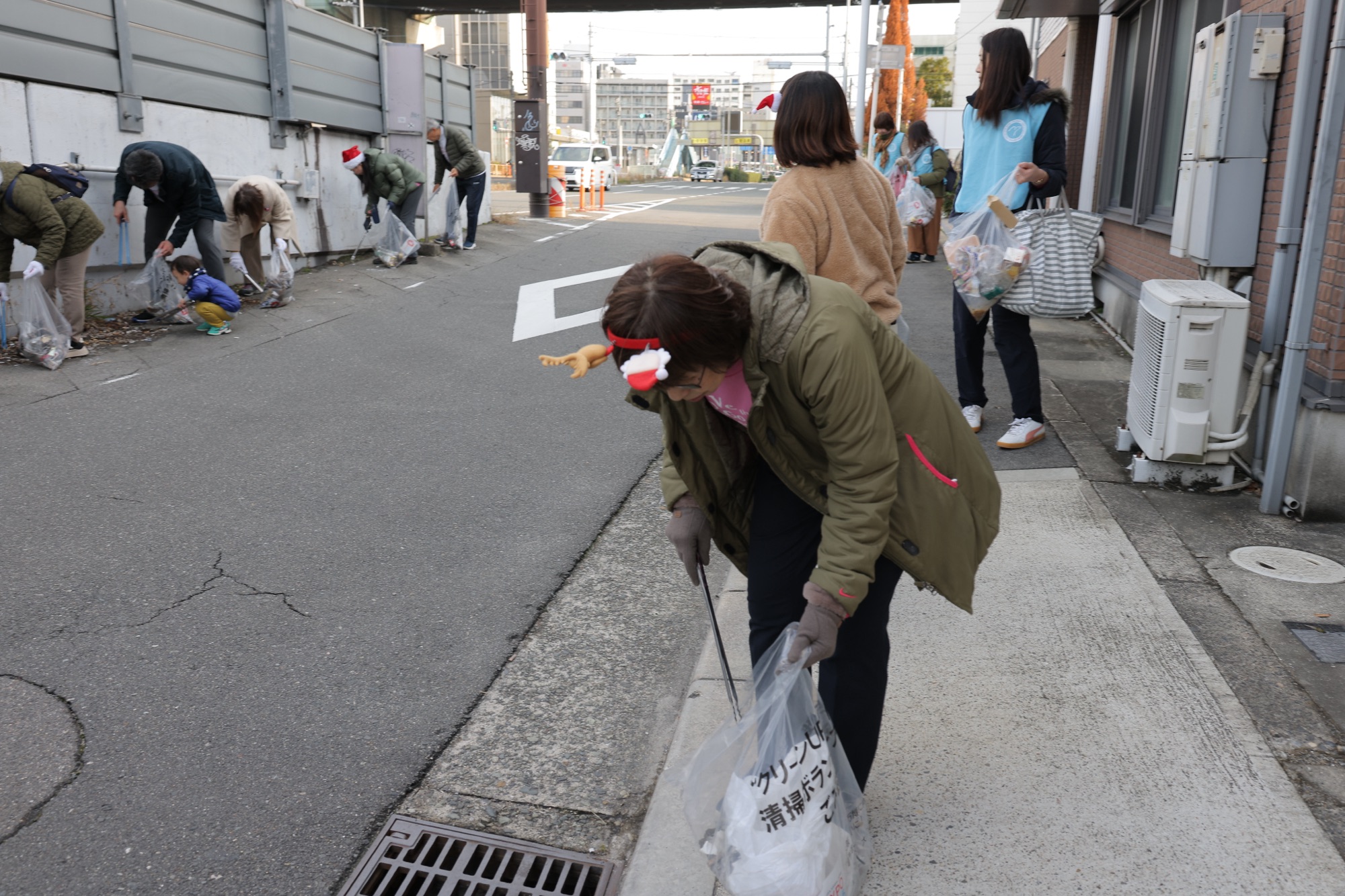 それが終わると、「クリスマス クリーンアップ」で聖殿から淀川の堤防までゴミ拾いをしました。