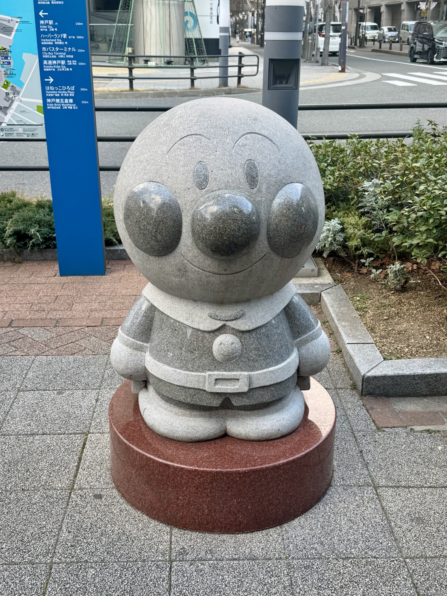 アンパンマンミュージアムが近くにあるので、道にアンパンマン達が出迎えてくれてます。