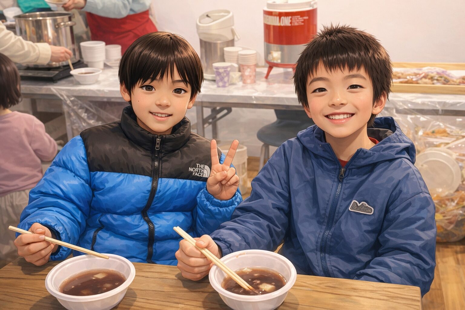 子供たちもぜんざい食べて笑顔😀です。