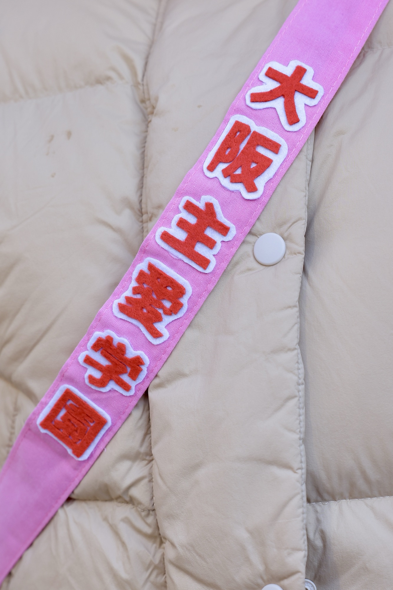 このかわいいタスキ。手作りなんです。