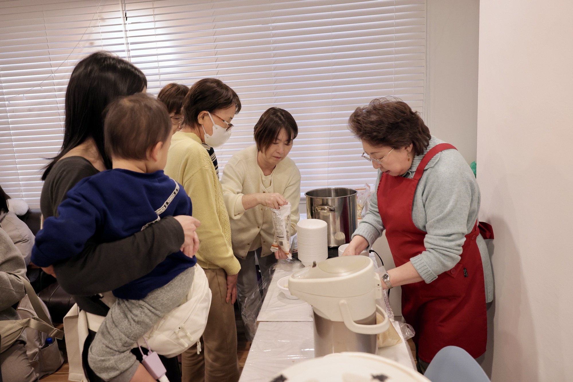 聖殿では、ぜんざい、お菓子、スープ、飲み物のおもてなしをしました。