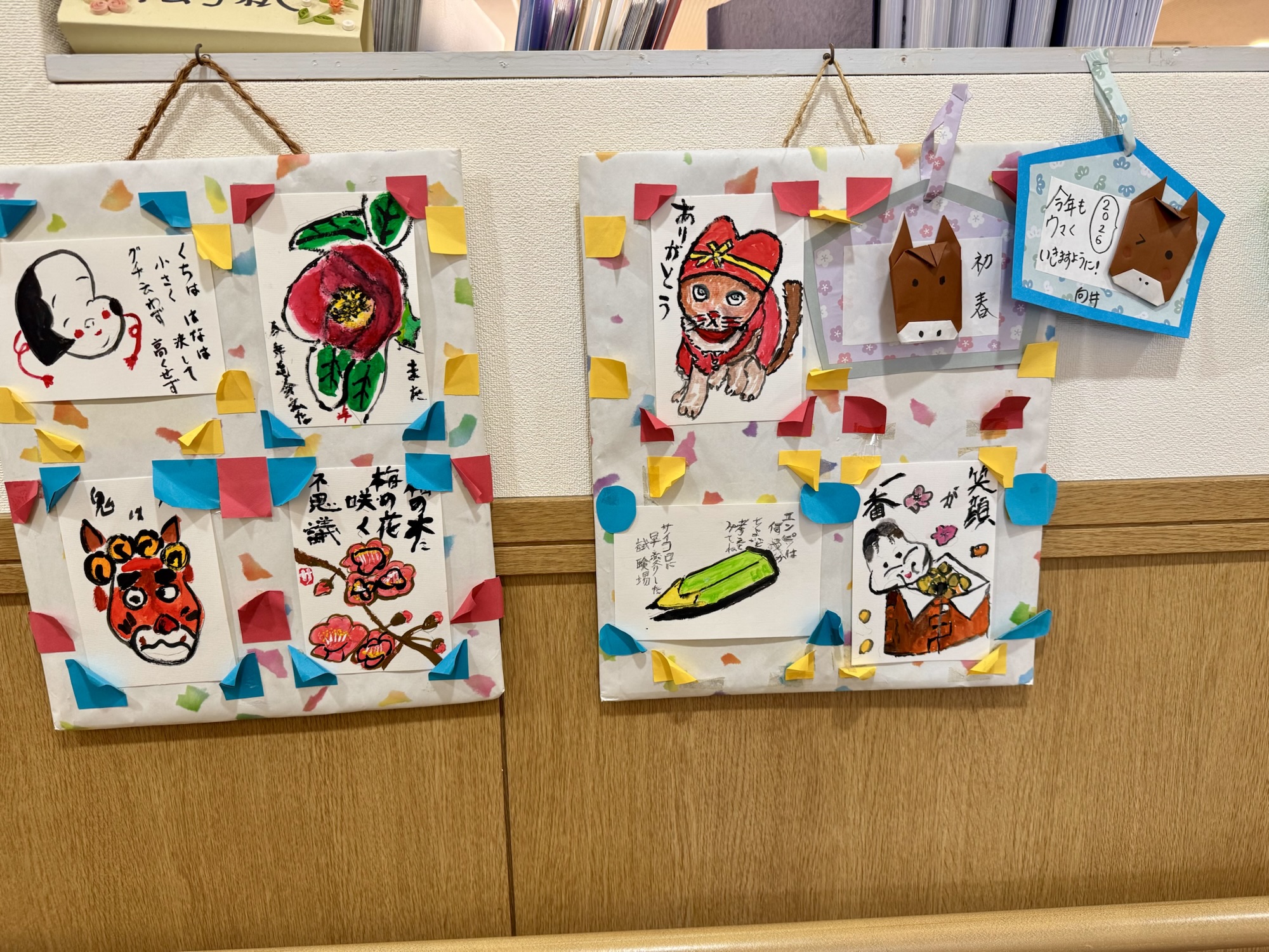 利用者さんが描かれた絵手紙や作品が飾ってある アットホームな施設です。