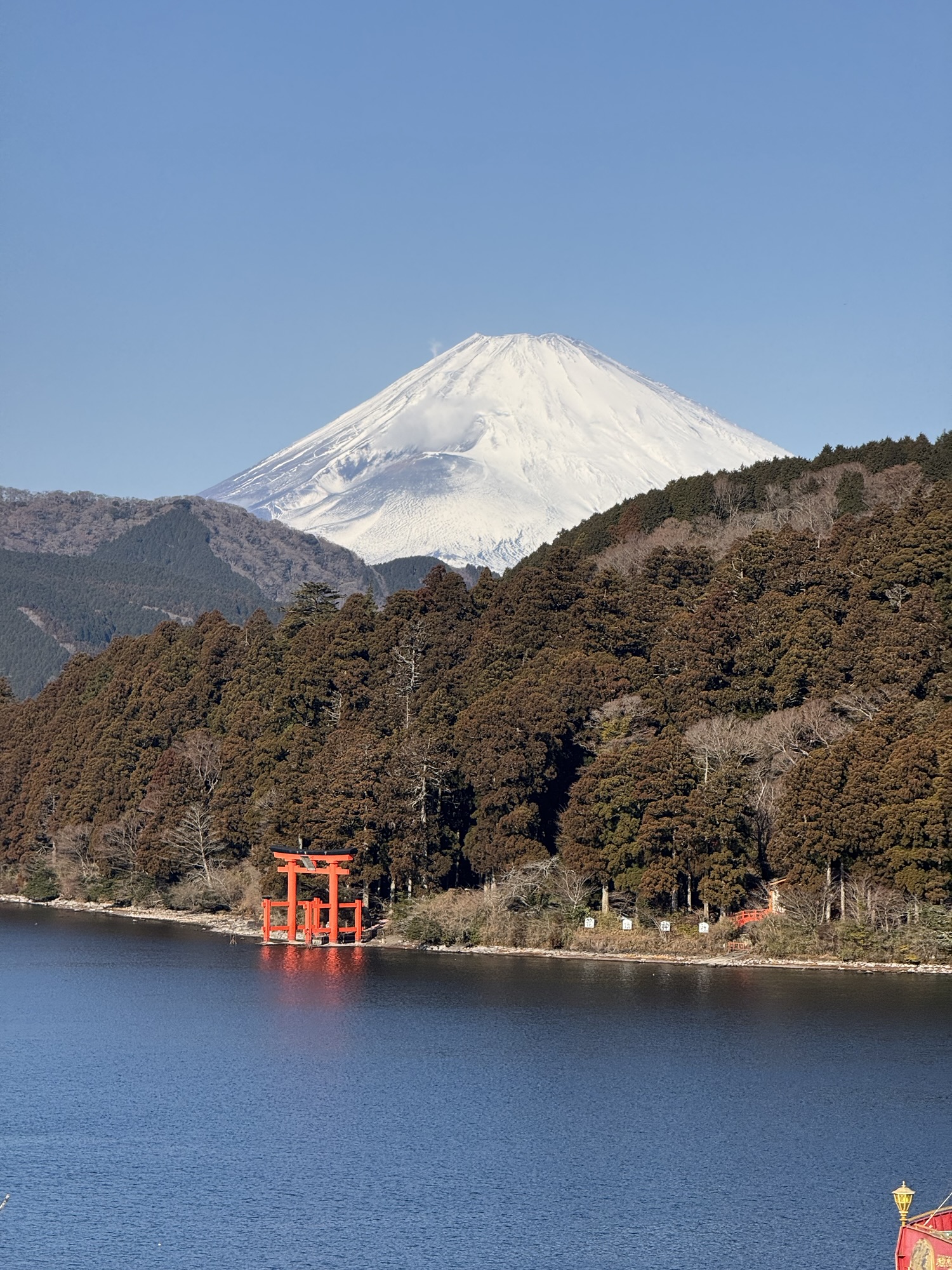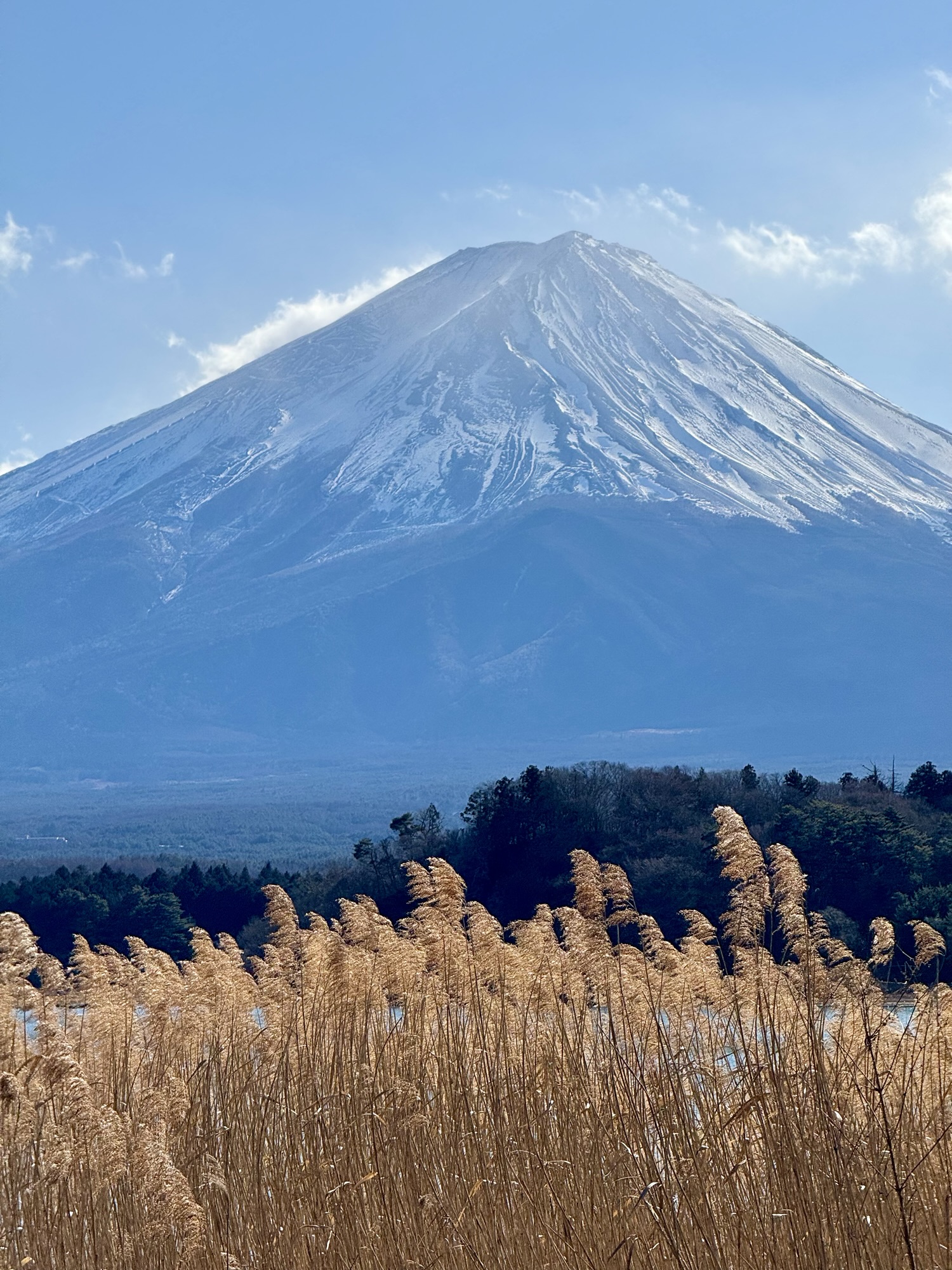風があるので逆さ富士は見れなかったですが、さすが、ここからの富士山神秘的でした。