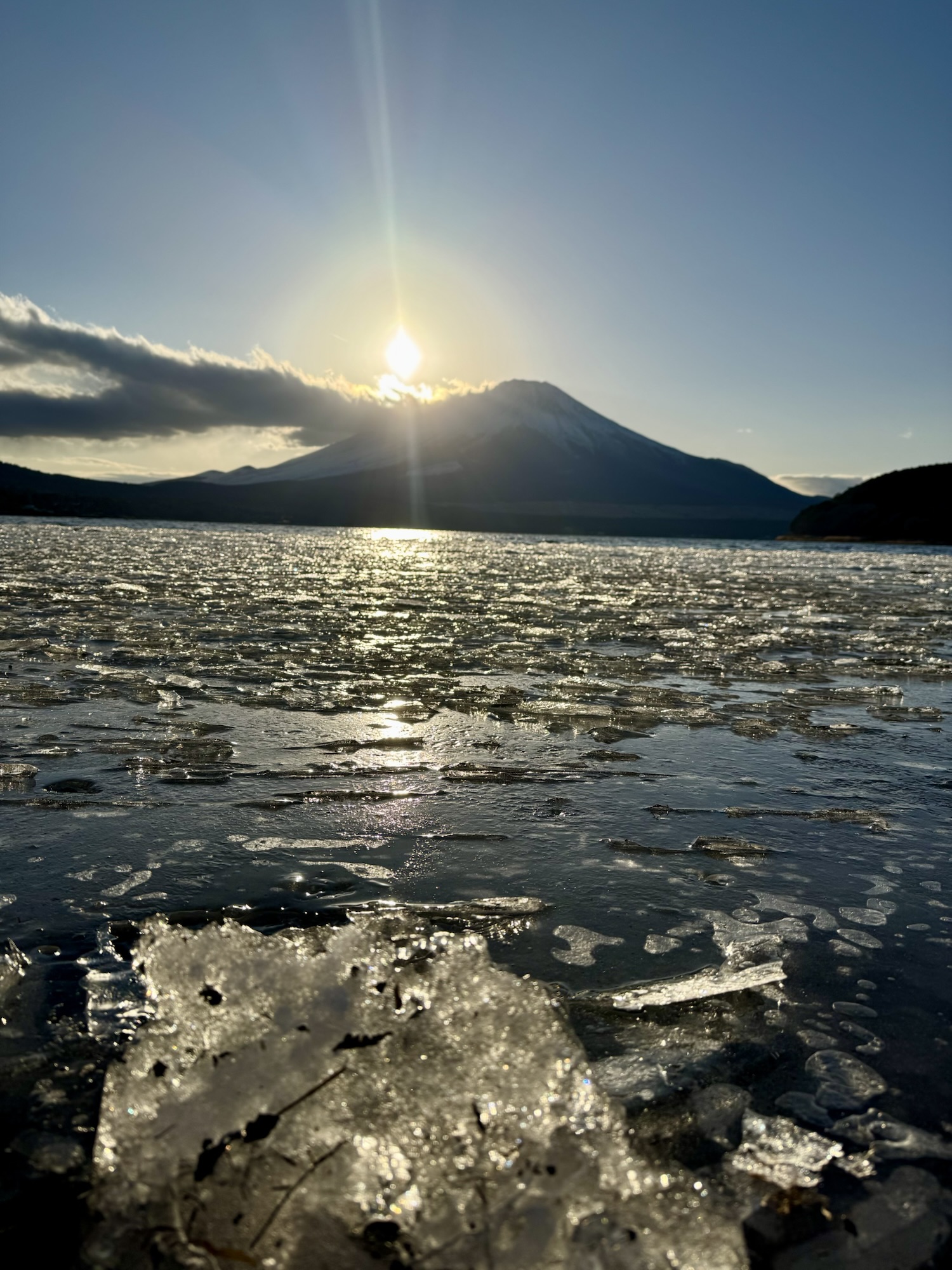 山中湖は氷が張ってて 風が冷たかったです。