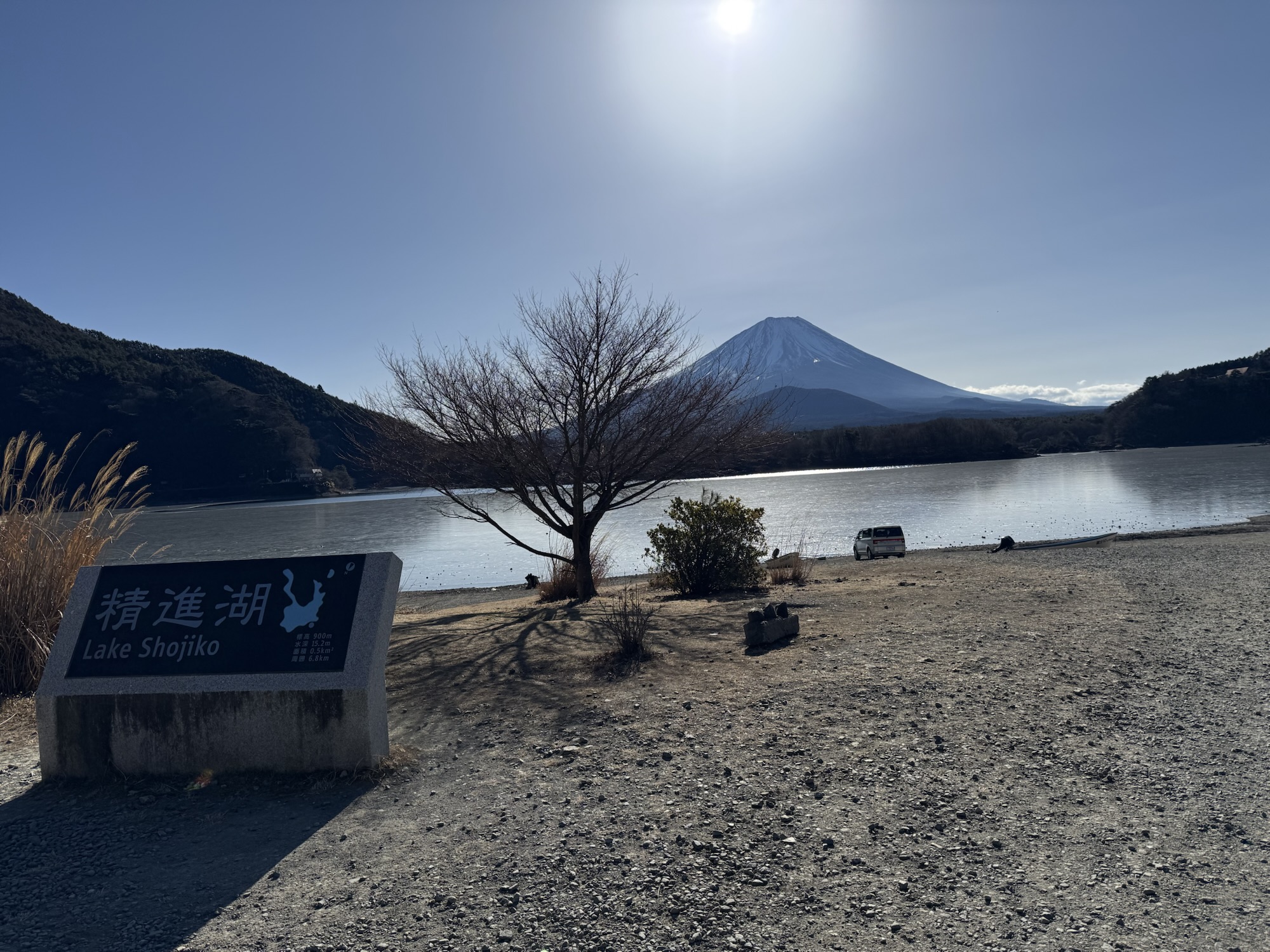 精進湖も大分氷が張ってて、石を投げたら カランカランと音を立てて石が転がっていきました。