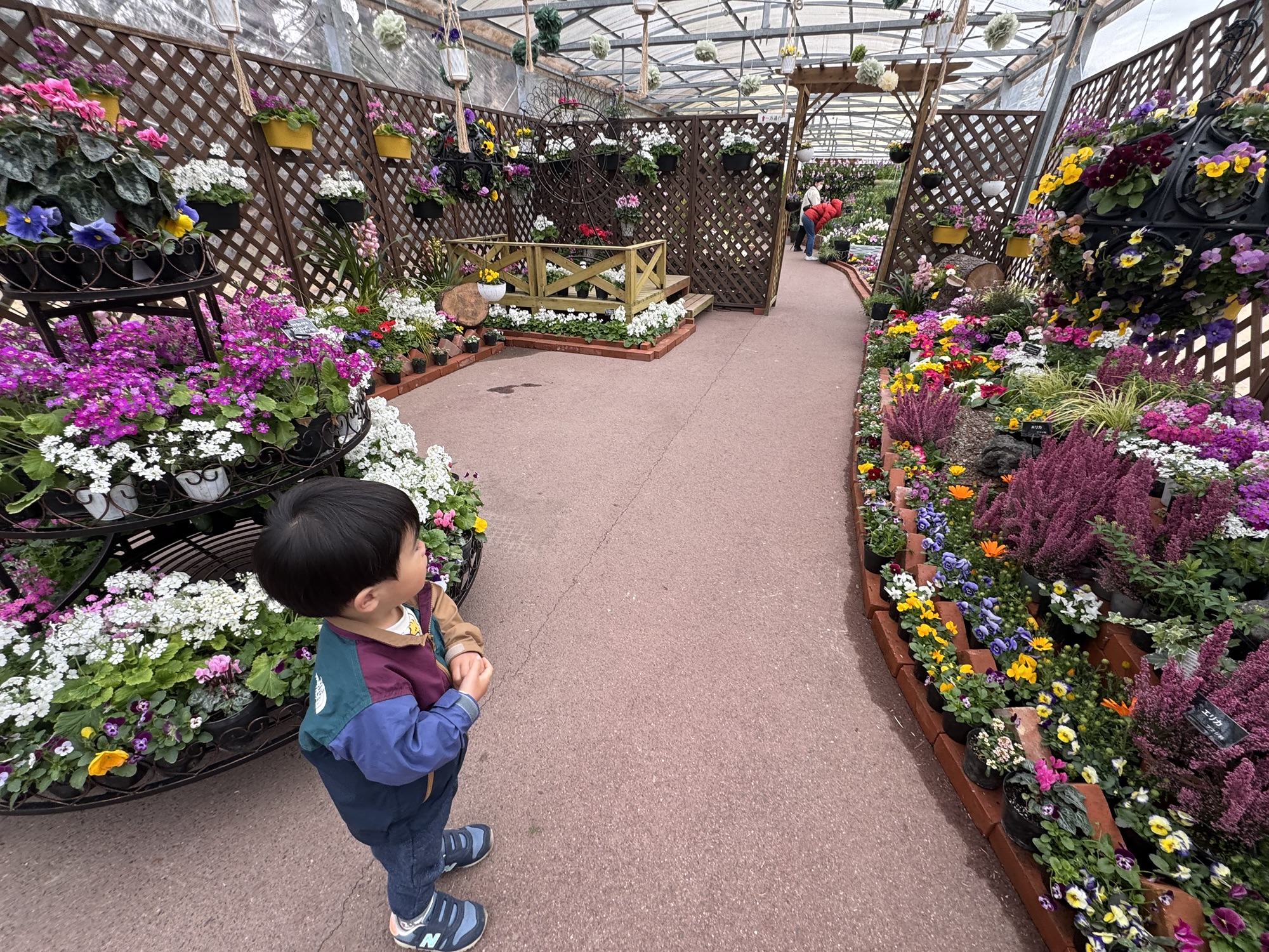 この中は色とりどりの春の花々が咲いてるので、目で見て香りをかいで春を感じることができます。