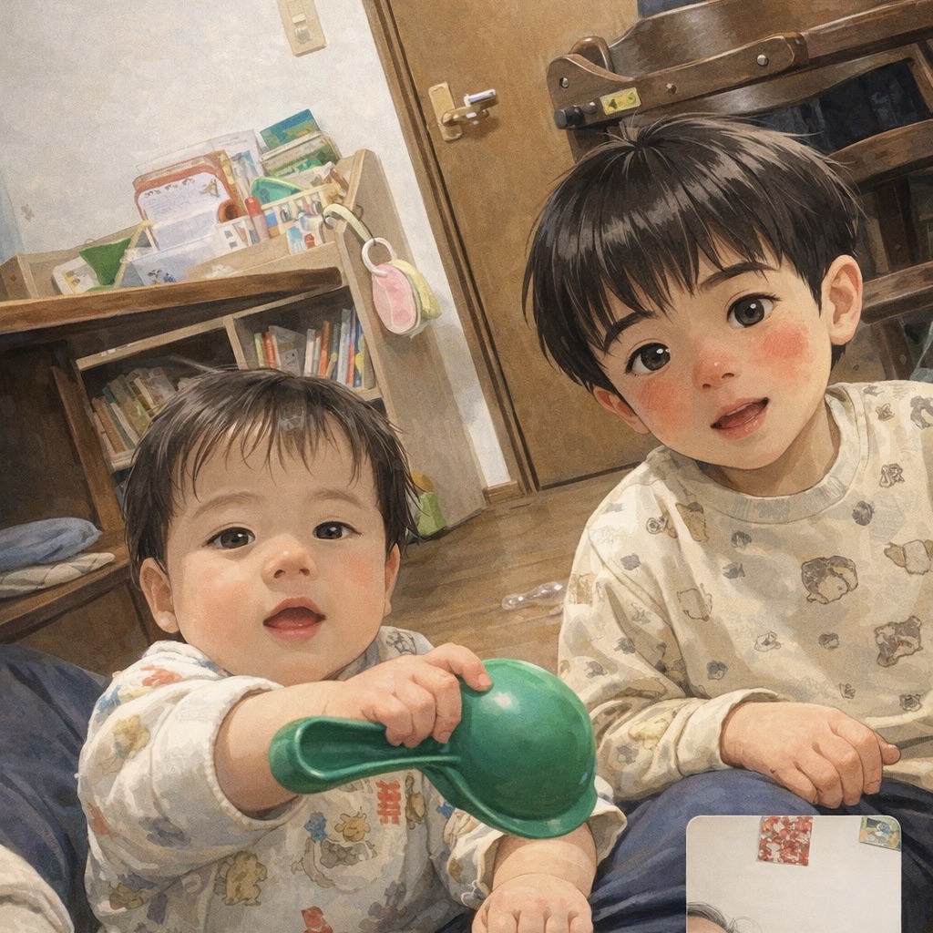 お昼寝してただっこマンも起きてきて 仲良く撮影することできました。