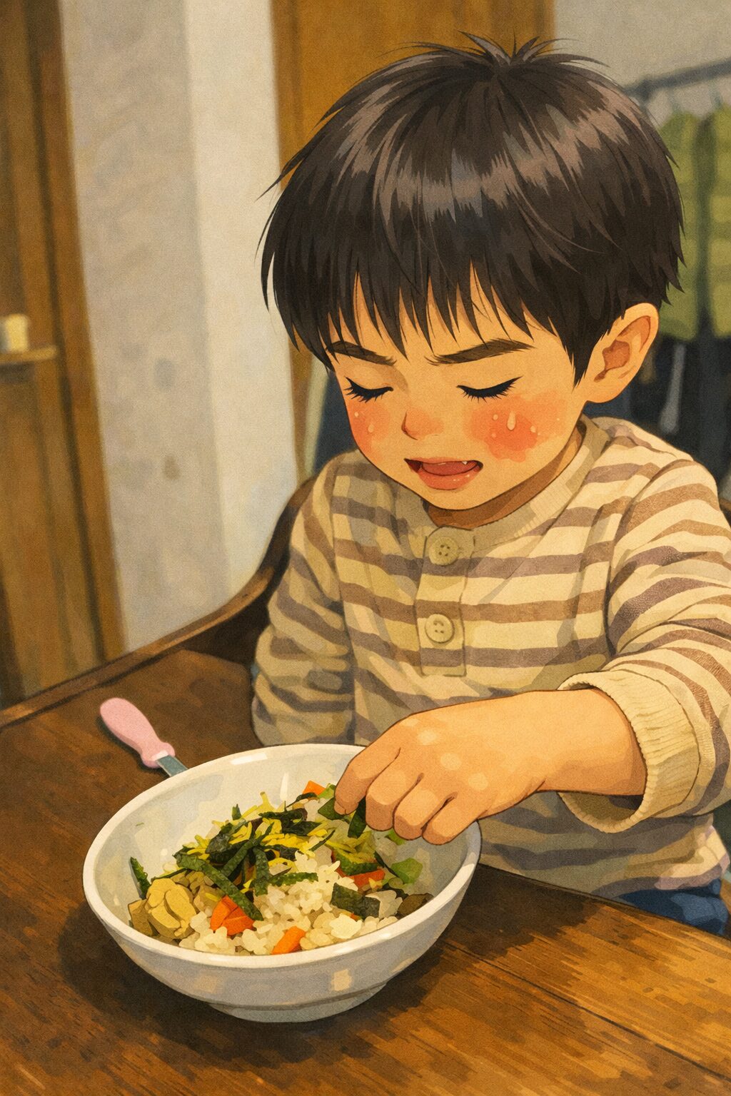 だっこマン 私が帰る時に「食べない」って言ってたからめちゃ凹んでたんですが、3回もおかわりしてくれて美味しそうに食べてる動画が送られてきました。