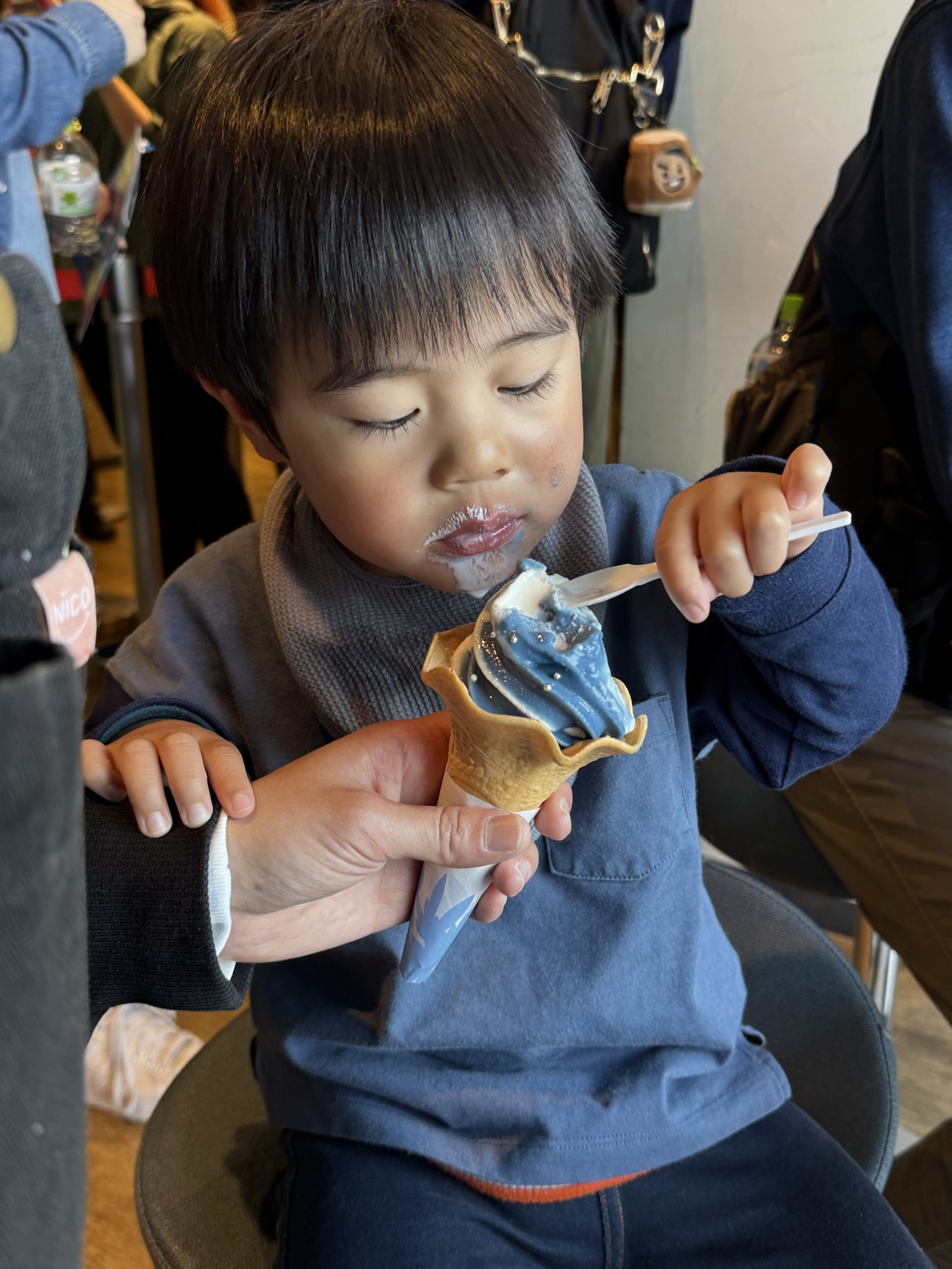 一番喜んだのは ジンベイソフトを食べる時でした。