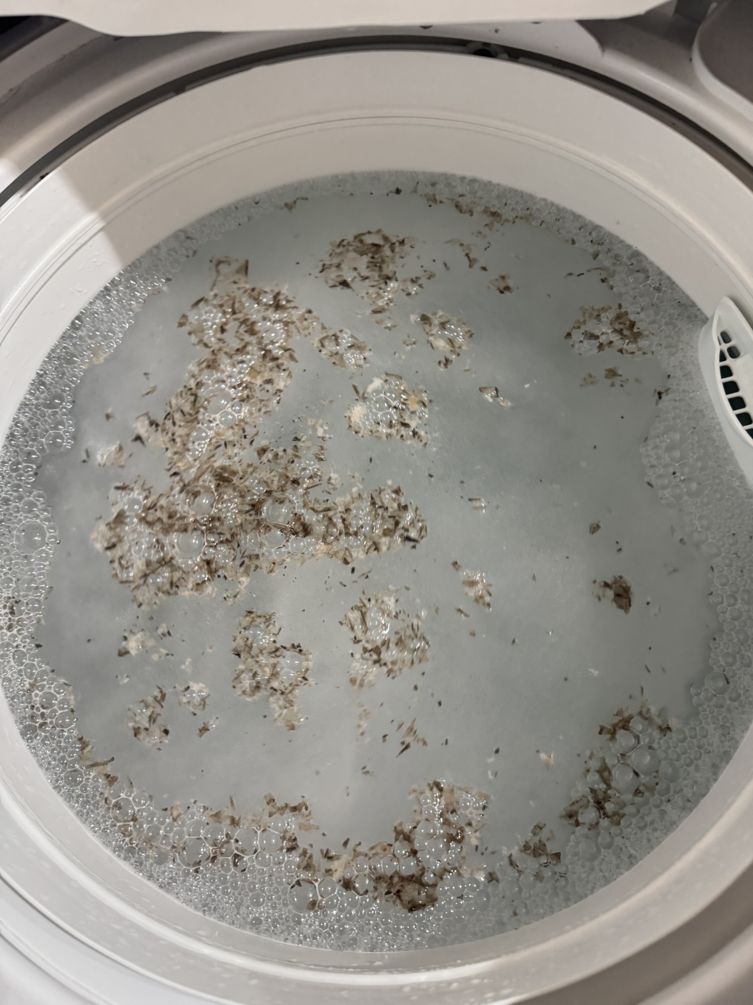 蓋を開けると 想像以上のわかめのようなゴミが洗濯槽に浮いてました。