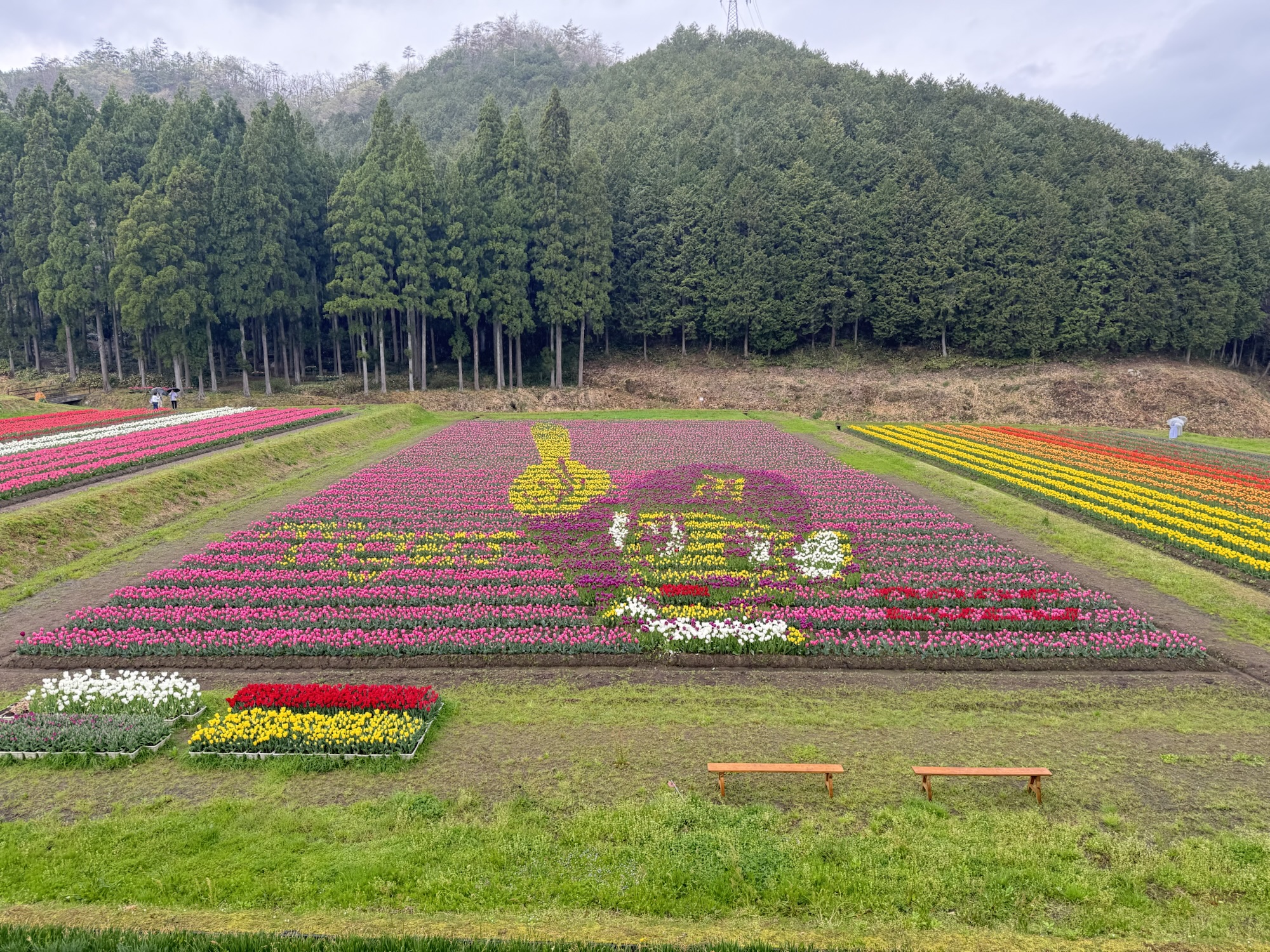 但東町は兵庫県唯一の球根生産地だったのですが、高齢化が進んで 最後に一つ花を咲かせたいという思いで 一つの所でチューリップを咲かせてみたら綺麗だろうな〜っと言う思いで始まったことがきっかけだったそうです。