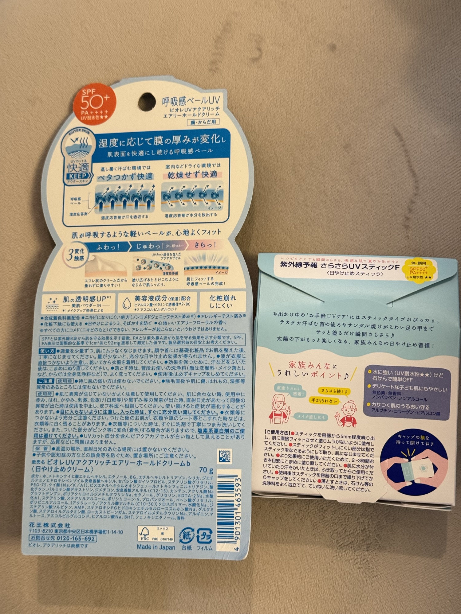 毎年ビオレの日焼け止めクリームはベタつかなくて塗り心地いいです。今年はさらに進化して蒸し暑い外でベタつかなくて、ドライな室内で乾燥を防いでくれるそうです。
